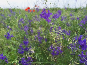 Поле зыблется цветами
