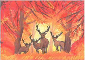 Олени в осеннем лесу