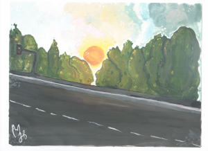 Свет из под синих облаков, пролился на осеннюю листву