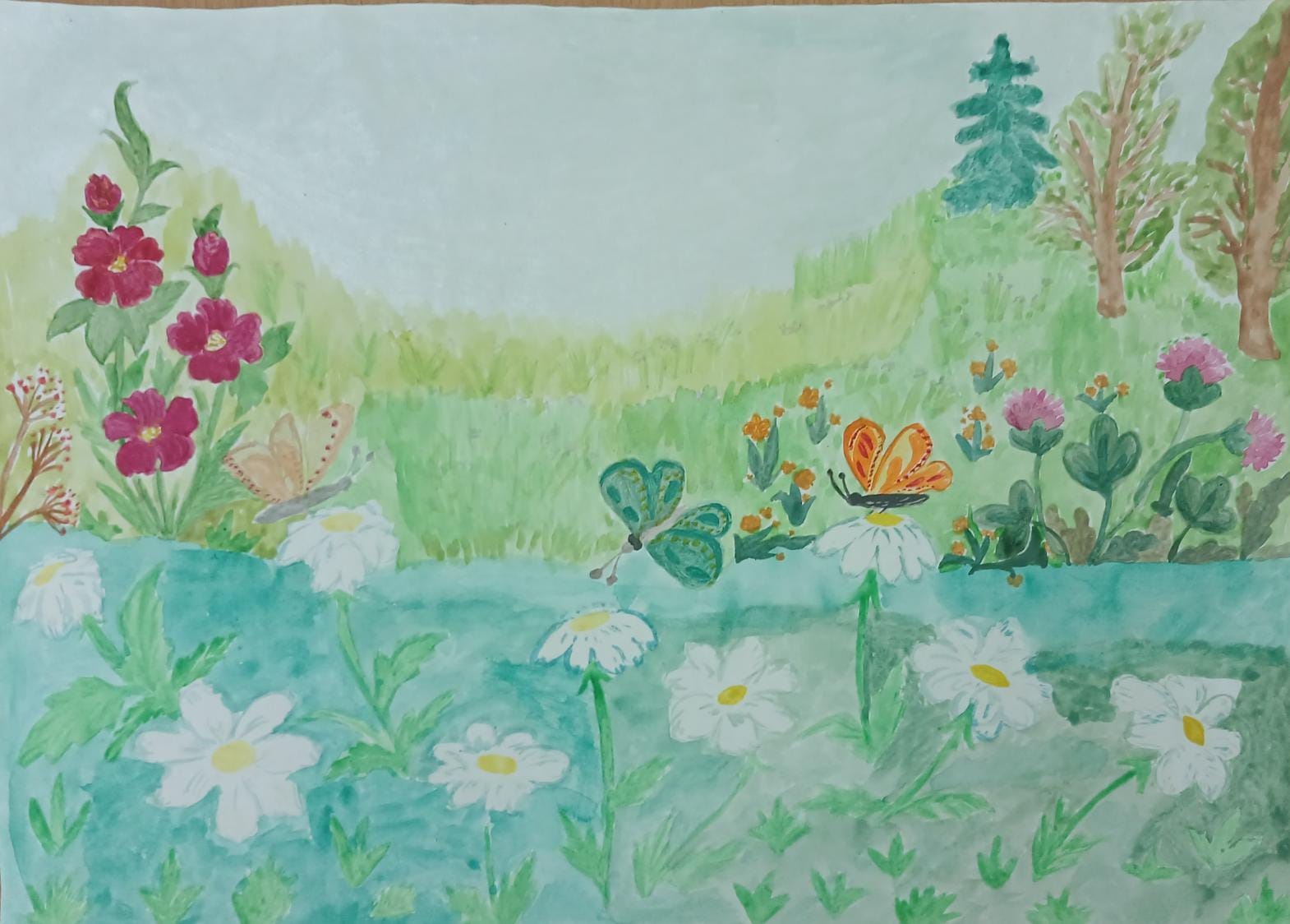 Бабочки и ромашки