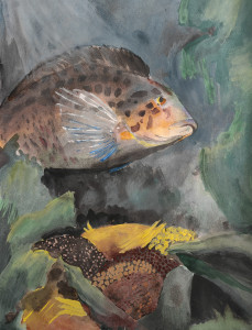 Терпуг охраняет кладку своей икры